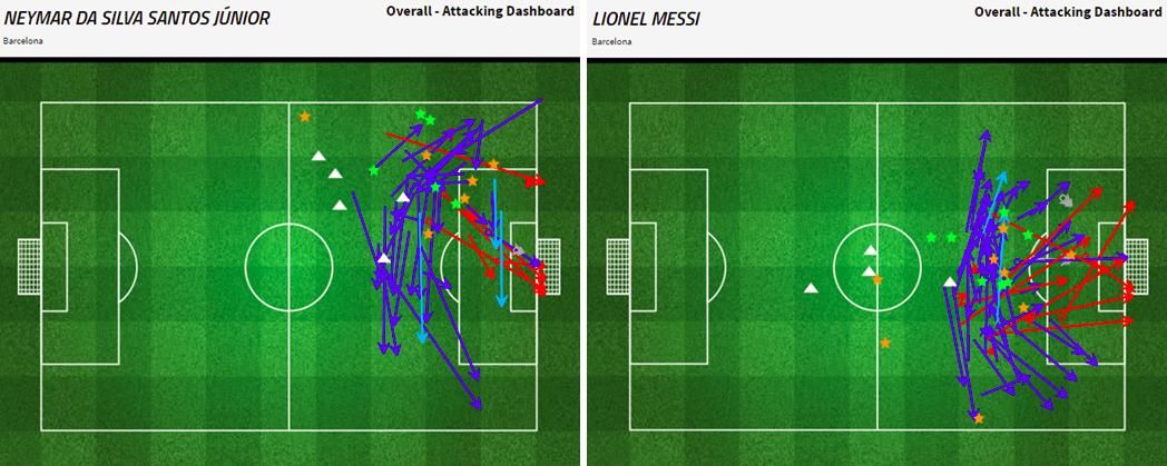 Gambar 5: Grafik permainan menyerang Neymar dan Lionel Messi - sumber: FourFourTwo Stats Zone