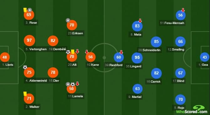 Mata beruntung karena United memiliki Fosu-Mensah yang memiliki kekuatan dan kecepatan untuk meladeni Rose, Eriksen, Alli, dan Kane sekaligus. Fosu-Mensah bisa meng-cover tugas Mata tersebut. Sayang, ketika Fosu-Mensah harus keluar akibat cedera di menit ke-68, tugas ini tidak bisa dilanjutkan oleh Matteo Darmian yang menggantikannya.