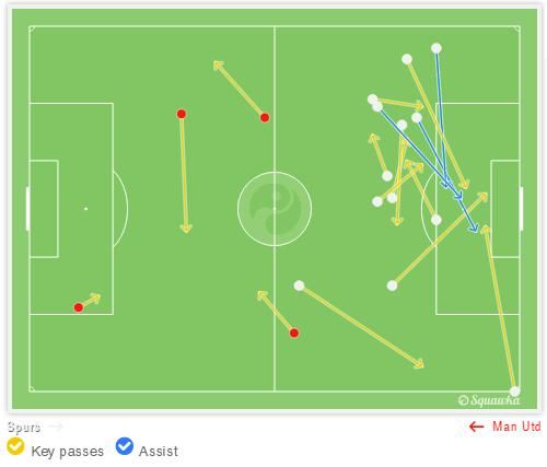 Spurs lebih banyak menyerang lewat kiri (49%) dan hampir selalu diawali oleh Rose. Memilih Juan Manuel Mata untuk meladeni kecepatan Rose mungkin bukan keputusan yang tepat dari Van Gaal. Namun, memilih Fosu-Mensah adalah keputusan yang tepat.