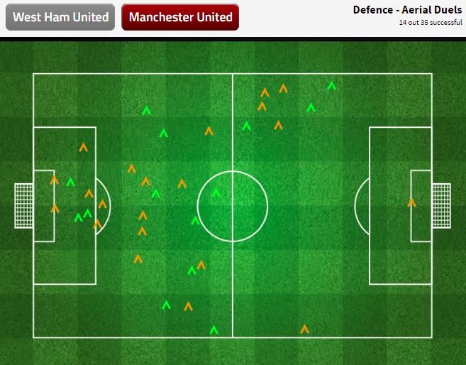 Gagal 10 kali dalam menghadapi total 21 umpan silang West Ham seolah menunjukkan bahwa United tidak pernah belajar (lihat gambar 3). Pada kenyataannya, menunjuk Blind dan Rojo untuk berduel udara dengan Carroll, Sakho, dan Reid, hanya akan menjadi "tinggal tunggu waktu sebelum ajal datang".