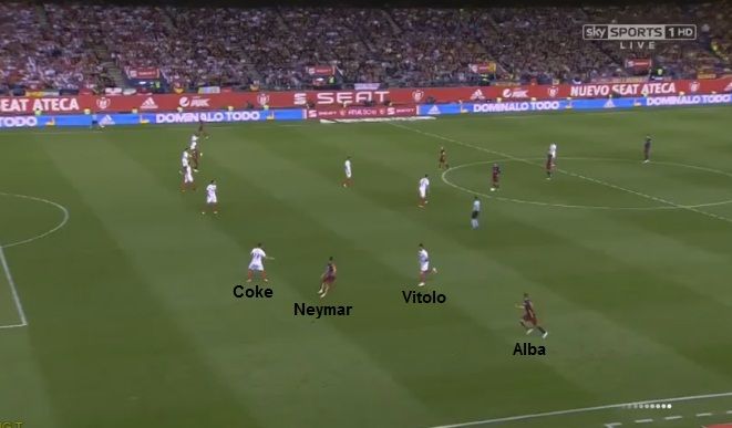 Coke sendiri salah satu orang yang menjadi penyebab terjadinya gol pertama Barcelona. Saat itu, ia lebih fokus melihat pergerakan Neymar tanpa mempertimbangkan pergerakan dari Jordi Alba yang masuk dari lini kedua.