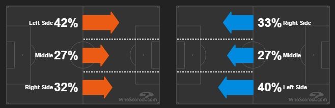 Gambar 3 - Arah Serangan. Kiri: Barcelona; Kanan: Sevilla β sumber: WhoScored
