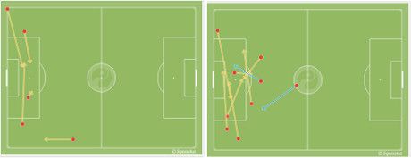Sementara Bayern, yang sudah unggul, hanya perlu menunggu pemain Schalke keluar dari posisinya. Sebab, setelah terjadinya gol ini, beberapa kali pemain Schalke tidak berada di posisi mereka yang seharusnya mereka tempati.