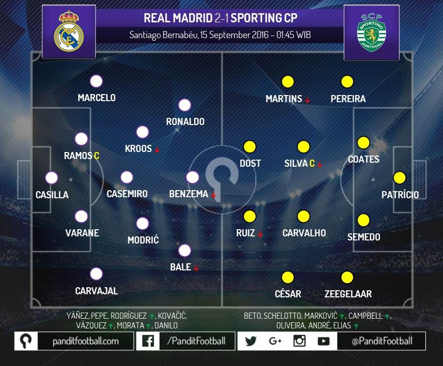 Sporting terlihat lebih cair dan sebenarnya lebih berhak menjadi pemenang pada pertandingan semalam. Tapi mengacu pada Real Madrid sebagai kesebelasan yang besar, mereka menunjukkan mentalitas mereka dengan mampu mencetak dua gol menjelang akhir laga. Mampunya Real mencetak dua gol ini adalah hasil dari kejeniusan Zinedine Zidane dalam melakukan pergantian pemain.