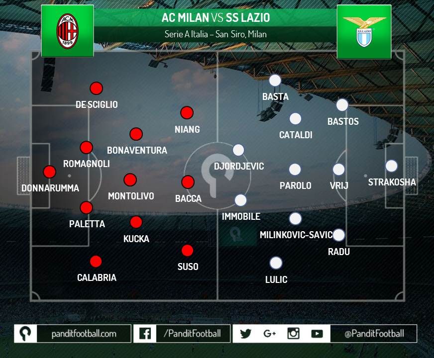 Rupanya upaya Lazio untuk mengalirkan bola kepada kedua pemain tersebut berhasil diantisipasi oleh Montella. Ia pun membuat formasi 4-3-3 yang dimainkan oleh Milan berubah menjadi 4-2-3-1 ketika bertahan demi menutup pergerakan kedua pemain tersebut.