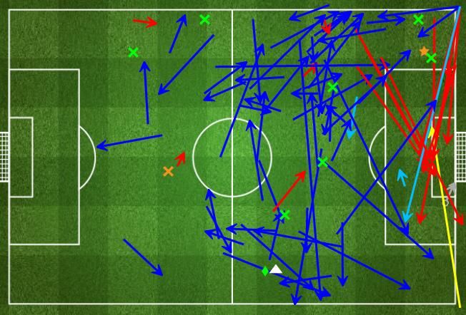 Banyaknya umpan ke samping ini, mengakibatkan banyak juga umpan silang yang tercipta dalam pertandingan kali ini untuk Real Madrid.