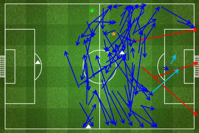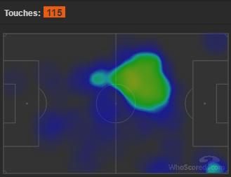 Gambar 3 β Area gerak Kroos. Terlalu fokus di sayap dan sepertiga lapangan akhir lawan. Sumber: whoscored.com