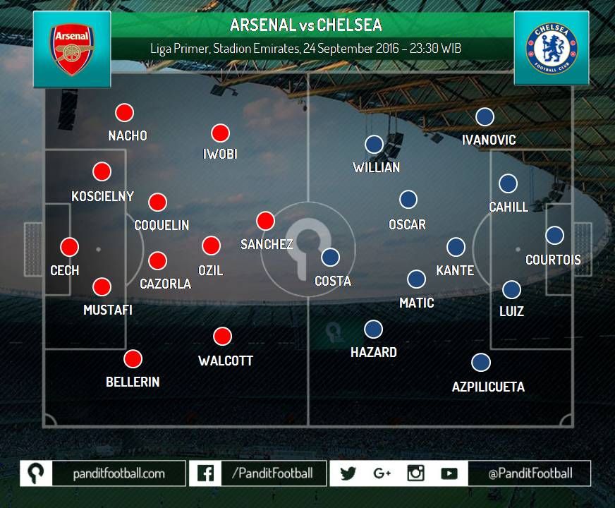 Kemungkinan besar, pemain yang berlaga menghadapi Nottingham tidak akan masuk susunan pemain utama saat menghadapi Chelsea. Oleh karena itu, Granit Xhaka yang kembali mencetak gol spektakuler ke gawang Hull City dan Nottingham, yang bermain penuh pada laga melawan Nottingham, tampaknya harus merelakan kembali posisi double pivot pada Santi Cazorla dan Francis Coquelin.