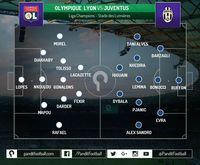 Dua kesebelasan memainkan formasi yang hampir mirip di laga ini. Lyon yang bertindak sebagai tuan rumah bermain dengan formasi 3-5-2 dengan mengandalkan Nabil Fekir dan Alexandre Lacazette sebagai tumpuan serangan. Sementara Juventus kembali memainkan formasi dasar mereka 3-5-2.