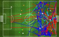 Gambar 3 - Upaya serangan Lyon yang terfokus pada umpan silang di sisi kanan. Total 24 umpan dilepaskan oleh pemain Lyon dan hanya empat yang mengarah ke gawang Buffon – sumber: FourFourTwo Stats Zone