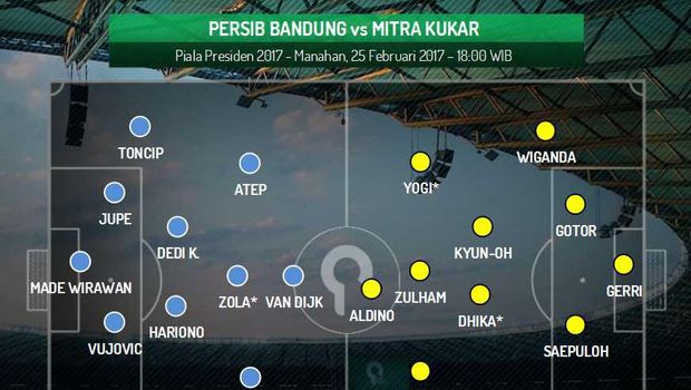 Persib sendiri menurunkan skuat yang agak berbeda dengan susunan pemain di laga terakhir fase grup melawan Persela Lamongan. Jika sebelumnya Wildansyah menemani Vujovic, kini Achmad Jufriyanto yang dipasang pelatih Persib, Djajang Nurjaman. Selain itu Shohei yang melawan Persela bermain sejak menit pertama digantikan Atep untuk menempati sisi kiri penyerangan.