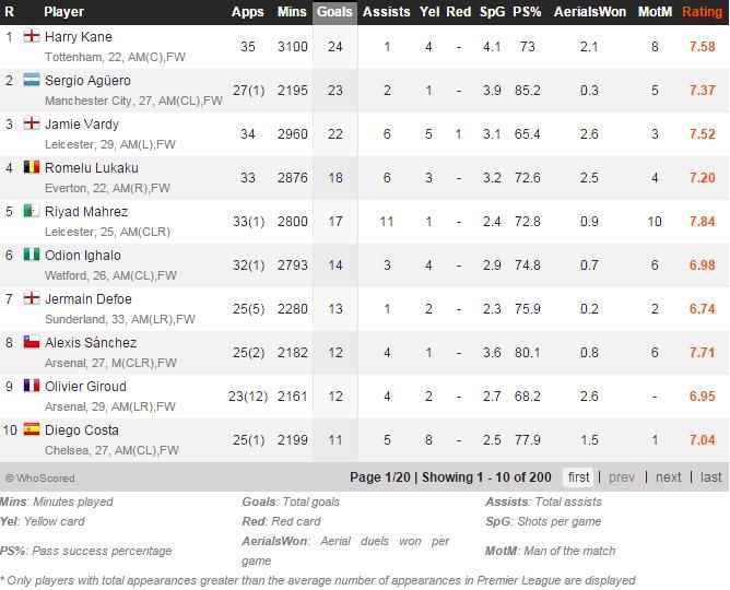 Rekan setimnya, Jamie Vardy, merupakan pemain yang lebih produktif dengan 22 gol. Begitu juga dengan Romelu Lukaku yang sudah mencetak 18 gol untuk Everton.