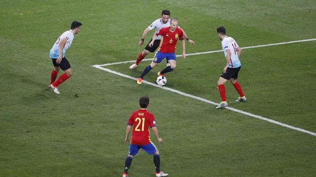 Mereka berhasil mencetak 66,5% penguasaan bola (tertinggi kedua di Piala Eropa 2016) dan 90,1% akurasi operan (tertinggi). Iniesta, Fabregas, dan David Silva (30) bisa digantikan oleh Thiago, Koke, dan Lucas Vázquez (24) untuk memberikan Spanyol pendekatan yang lebih langsung dan lebih cepat, terutama menghadapi Italia Senin besok (27/06/2016 pukul 23:00 WIB).