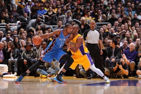 Kobe menjadi penampil terbaik Lakers di partai ini dengan sumbangan 28 poin, 4 rebound, dan 3 assist. Namun, torehannya masih kalah jauh dari Kevin Durant di kubu Thunder yang menggila dengan 42 poin, 8 rebound, dan 5 assist.