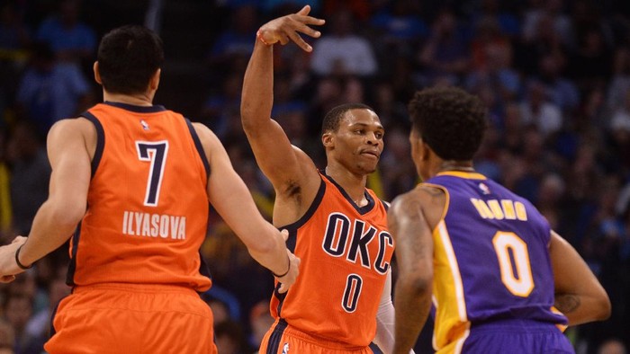Thunder menang 113-96 ketika menjamu Lakers di Chesapeake Energy Arena, Senin (31/10/2016) WIB. Itu menjadi kemenanngan ketiga Thunder dari jumlah pertandingan yang sama di awal musim ini.