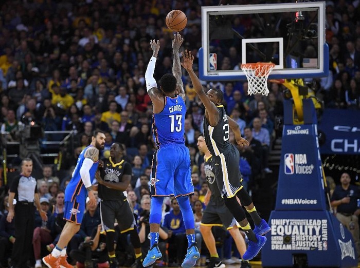 Bertanding di Oracle Arena, Rabu (7/2/2018) siang WIB, duet Russell Westbrook dan Paul George tampil impresif untuk menginspirasi kemenangan Thunder. Wesbrook menyudahi permainan dengan 34 poin, 9 rebound, dan 9 assist sedangkan George mengemas 38 poin, lima rebound, dan tiga assist.