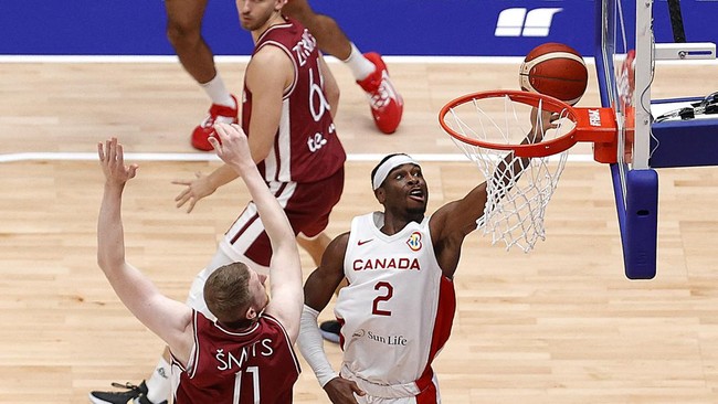 Momentum itu dipertahankan Kanada di kuarter ketiga. Mereka mencetak 10 poin di 90 detik pertama, termasuk dunk Shai Gilgeous-Alexander, dan hanya memberi Latvia dua poin, sehingga skor menjadi 53-44.