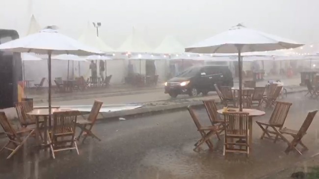 Jakarta - Hujan deras mengguyur Sirkuit Mandalika. Hujan turun sejak 14.40 WITA. Uniknya, tak lama sebelum hujan turun, Danrem 162 Wira Bhakti Brigjen TNI Ahmad Rizal Ramdhani mengatakan TNI sudah mengerahkan personelnya untuk mebuat rekayasa cuaca.