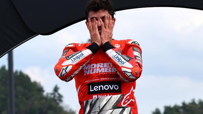 Jakarta - Marc Marquez meraih gelar juara dunia MotoGP ketujuhnya di Grand Prix Jepang. Marquez kemudian berhenti di depan layar lebar dan dengan berlinang air mata, menyaksikan montase perjuangannya selama enam tahun terakhir.