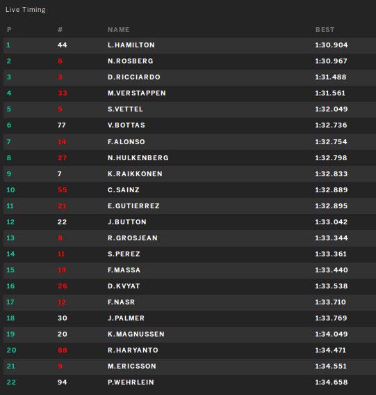 Sementara di posisi tiga ada pebalap Red Bull, Daniel Ricciardo. Melengkapi posisi lima besar ada Max Verstappen dan Sebastian Vettel.