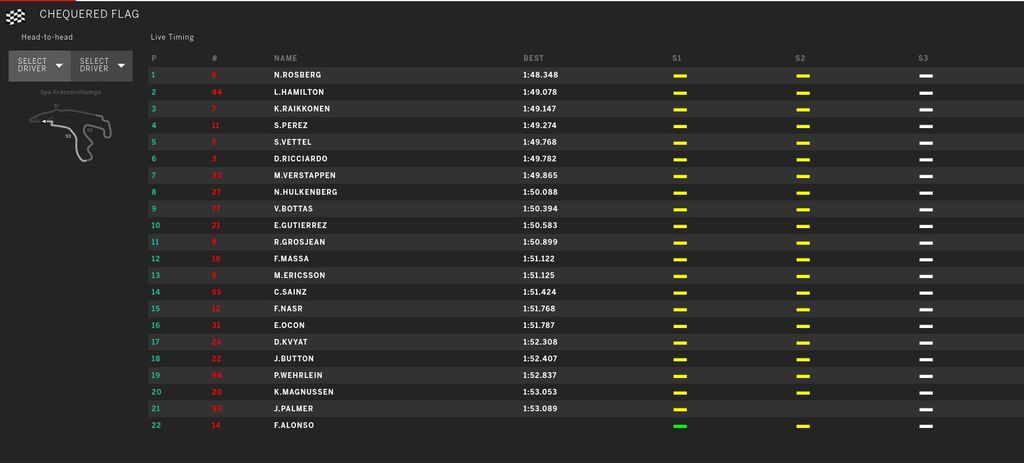 Sejak awal-awal sesi, pebalap asal Jerman itu langsung menempatkan dirinya sebagai pebalap dengan waktu tercepat. Dia lantas tak tergeser di posisi tersebut sampai chequered flag dikibarkan. Waktu terbaik yang dibuat Rosberg adalah satu menit 48,348 detik.
