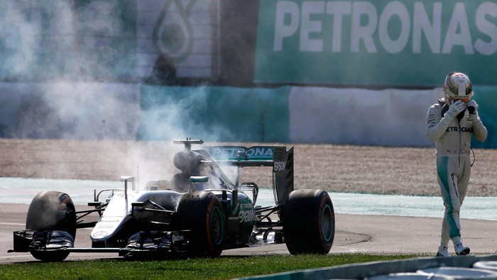Mesin mobil Mercedes milik Hamilton mengalami kerusakan saat balapan di Sirkuit Sepang, Minggu (2/10/2016) lalu, tinggal menyisakan 16 lap. Padahal, saat itu dia tengah berada di posisi terdepan.