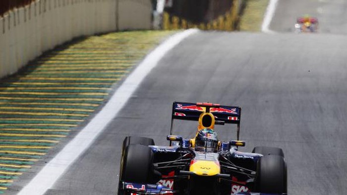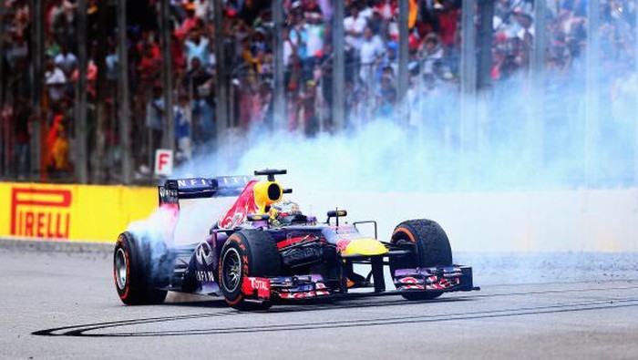 Vettel mencatat hat-trick juara dunia usai meraih lima kemenangan dengan Abbey, nama mobil RB8-nya.