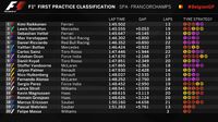 Dalam sesi yang berlangsung di Circuit de Spa-Francorchamps, Jumat (25/8/2017) sore WIB, Raikkonen menempati posisi teratas dengan waktu 1 menit 45,502 saat memakai ban ultra soft.