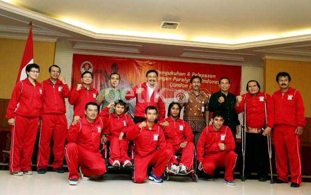 - Menpora Andi Alifian Mallarangeng mengukuhkan dan melepas para atlet Paralympic London 2012 di Wisma Menpora, Jakarta, Jumat (24/8/2012). Atlet Indonesia yang lolos Paralympic London antara lain, Ninengah Widiasih atlet angkat berat, Satyo Budi Hartanto atlet atletik, Agus Ngamin atlet renang, dan David Yakob atlet tenis meja.