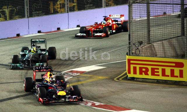 - Sebastian Vettel berhasil memetik tiga kali kemenangan beruntun di musim balap F1 tahun ini. Driver asal Jerman itu sukses menjadi pemenang di GP Singapura.