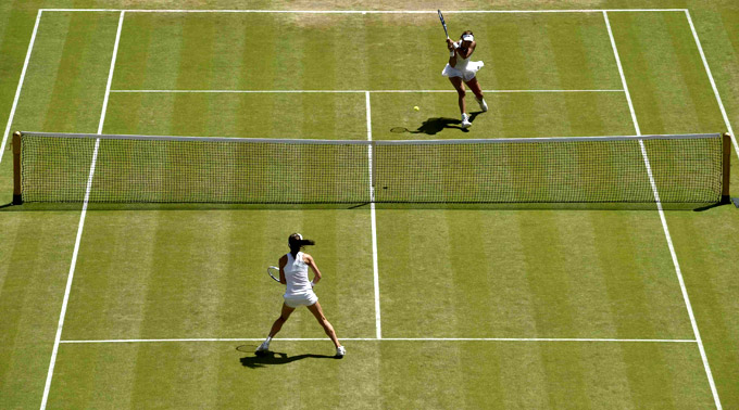 Serena Williams dan Maria Sharapova bertanding memperebutkan tiket final Wimbledon 2015 di Centre Court, Kamis (9//7/2015) malam. Stefan Wermuth/Reuters/detikFoto.