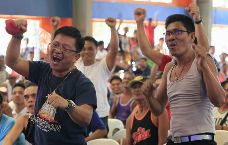 Serunya Warga Filipina Nonton Pertarungan Pacquiao BAGIKAN URL telah disalin Warga Filipina menyaksikan pertarungan Manny Pacquiao lewat televisi di Manila, Minggu (10/4). REUTERS/Romeo Ranoco. Manny Pacquiao sendiri bertarung dengan petinju asal AS Timothy Bradley di Las Vegas. REUTERS/Romeo Ranoco. Anak-anak ikut menonton. REUTERS/Romeo Ranoco. Salah satu ekspresi warga Filipina yang menyaksikan pertarungan Manny Pacquiao versus Timothy Bradley. REUTERS/Romeo Ranoco.