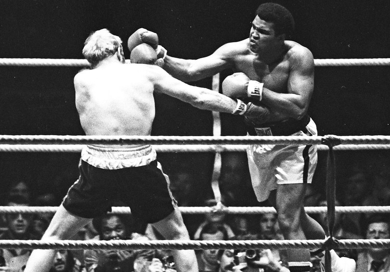 Muhammad Ali (kanan) bertarung melawan Richard Dunn (kiri) di Jerman pada 24 Mei 1976. Reuters/Sporting Pictures/File Photo.