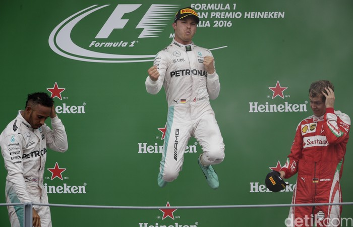 Jakarta - Pebalap Mercedes, Nico Rosberg, memenangi balapan GP Italia. Sementara itu, rekan satu timnya, Lewis Hamilton, finis di urutan kedua.