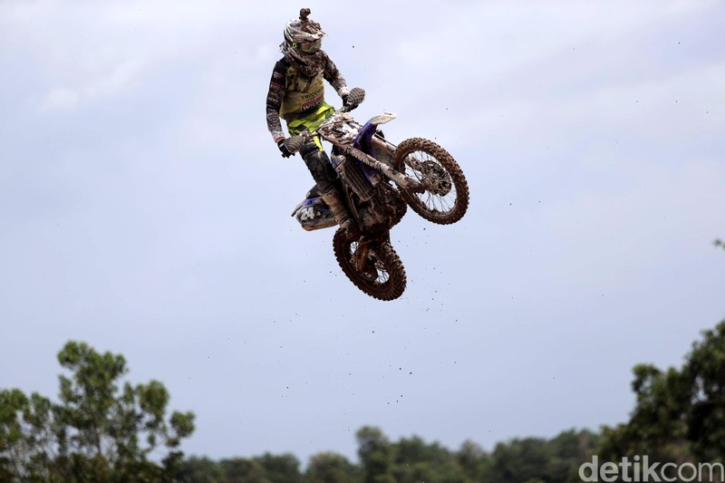 Saat pebalap melayang ke udara, menjadi momen yang ditunggu penonton.
