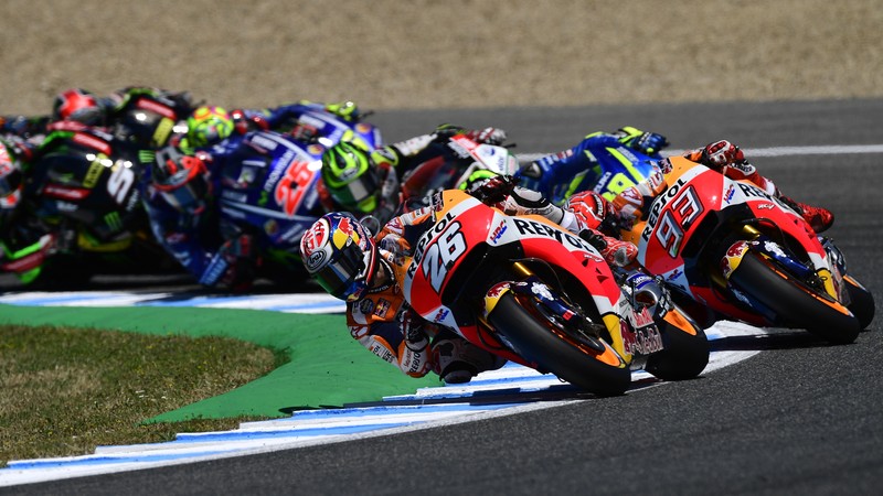 Nyaris di sepanjang balapan Dani Pedrosa tak tersentuh oleh pesaingnya, bahkan Marc Marquez hanya bisa membayangi dari jauh (Foto: Mirco Lazzari gp/Getty Images).