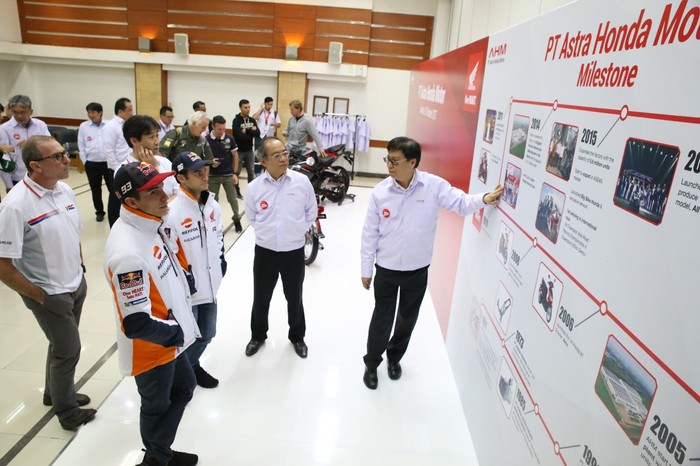 Usai tampil di MotoGP Jepang, Marc Marquez dan Dani Pedrosa datang ke Indonesia. Sebelum menggelar meet and greet Selasa (17/10/2017), Siang ini mereka mengunjungi pabrik Honda di Sunter. (ist. AHM)