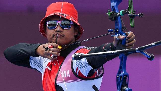 Tokyo - Langkah tim panahan beregu putra Indonesia di Olimpiade Tokyo 2020 terhenti di babak 16 besar. Tim panahan beregu putra Indonesia dikalahkan tim Inggris.