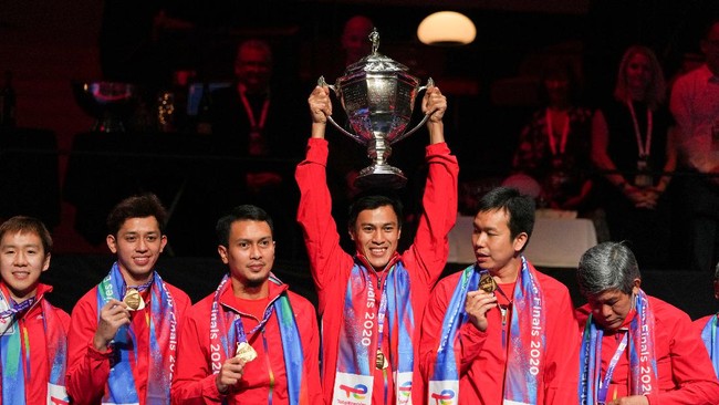 Kemenangan Indonesia di Piala Thomas 2020 membawa ironi tersendiri. Pasalnya Bendera Merah Putih tak berkibar saat wakil Indonesia naik podium tertinggi untuk menerima medali dan piala usai memenangkan pertandingan 3-0 melawan China. Ritzau Scanpix/Claus Fisker via AP.