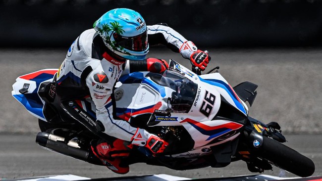 Jakarta - Pembalap tim BMW MOTORRAD WorldSBK Tom Sykes terjatuh saat sesi latihan bebas pertama (FP1) di Sirkuit Mandalika, Nusa Tenggara Barat (NTB), Jumat (19/11/2021).