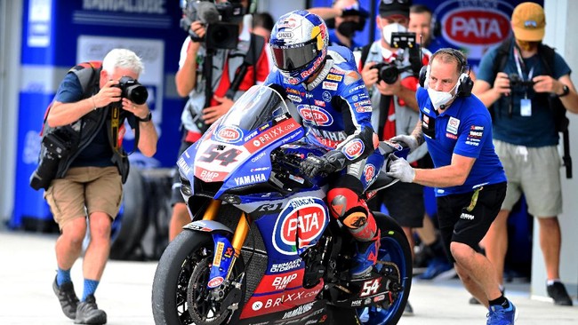 Lombok - Rider Pata Yamaha, Toprak Razgatlioglu, berhasil merebut posisi start pertama di race 1 WSBK Mandalika 2021.