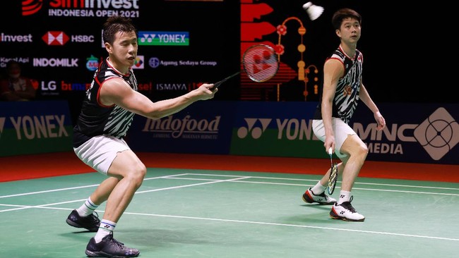 Bali - Marcus/Kevin kembali menorehkan prestasi memukau di Indonesia Open 2021. The Minions berhasil menang 21-14, 21-18 atas Ganda Putra Jepang.