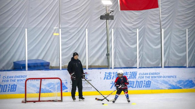 China - Menjelang Olimpiade Beijing, animo warga menyukai olahraga musim dingin semakin meningkat. Hoki dan ski menjadi cabor yang paling diminati anak-anak di China.