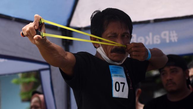 Jakarta - Lomba ketapel digelar di Kebon Pala, Jakarta Timur, Sabtu (5/2/2022). Lomba ini digelar untuk membangkitkan olahraga tradisional ketapel di Tanah Air.