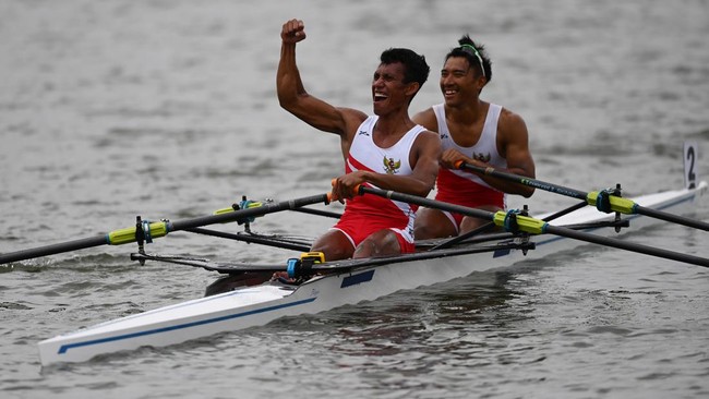 Vietnam - Kontingen Indonesia menyabet emas pertama di ajang SEA Games 2021 Vietnam. Adalah cabang olahraga Dayung yang menyumbang emas pertama itu. Salut!