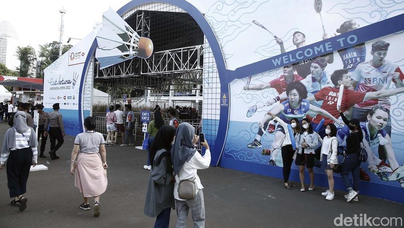 Sejumlah penonton memadati Istora Senayan, Jakarta, untuk menyaksikan gelaran Indonesia Open 2022, Jakarta, Selasa (14/6/2022).