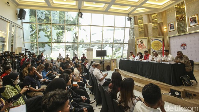 Jakarta - Kemenpora Dito Ariotedjo bersama Angela Tanoesoedibjo dan Menteri Basuki menggelar konferensi pers soal persiapan RI jelang pesta olahraga Asia tersebut.