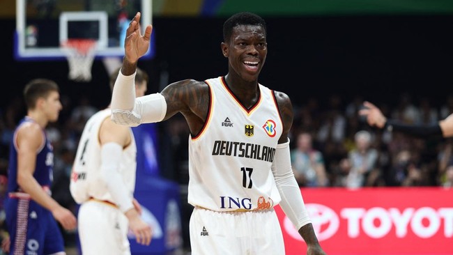 Pertama yakni Dennis Schroder (LA Lakers). Selain membawa Jerman menjadi juara, ia juga meraih gelar Most Valuable Player (MVP). Selama turnamen, ia mencetak 19,1 poin, 6,1 asis, 2 rebound, dan 1,4 steal per laga. Foto: REUTERS/ELOISA LOPEZ