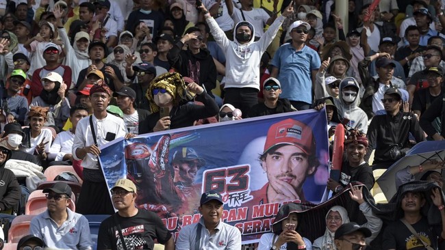 Lombok - Balapan utama MotoGP Mandalika 2023 ramai disaksikan ribuan penonton dari berbagai daerah di Indonesia dan penonton luar negeri.