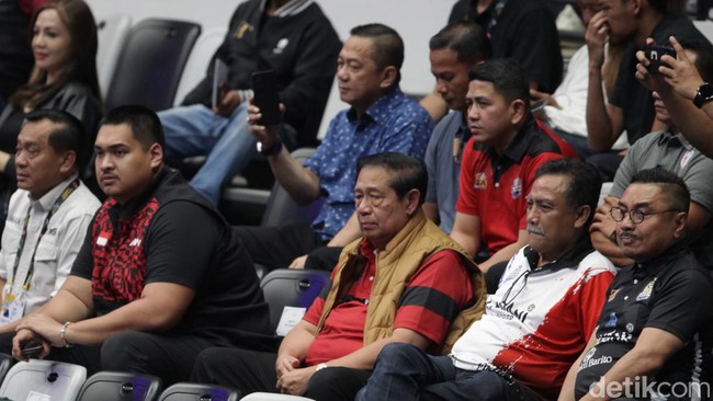 Jakarta - Presiden ke-6 Susilo Bambang Yudhoyono (SBY) menonton laga Indonesia All Star vs Red Sparks di Indonesia Arena. Begini momennya.